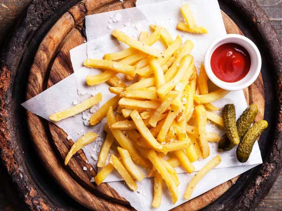 чтобы избежать этого , нужно нарезать картофель достаточно крупными ломтиками и посолить только в конце жарки.